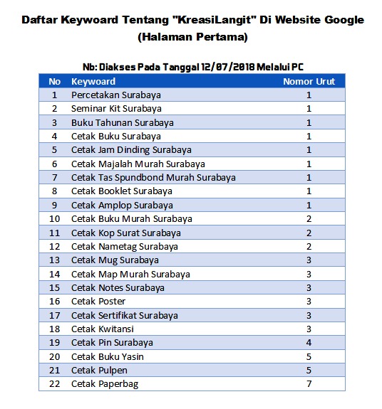 - GOOGLE : Anda pasti sudah tidak asing lagi dengan mesin pencari ini. Dengan mesin pencari Google, anda pun bisa mendapatkan informasi tentang percetakan. Bahkan dengan membandingkan website percetakan satu dengan yang lain, anda dapat menilai kualitas dan keseriusan percetakan tersebut dalam berbisnis. dengan google, anda bisa mencari percetakan yang berkualitas yang dekat dengan kantor anda.